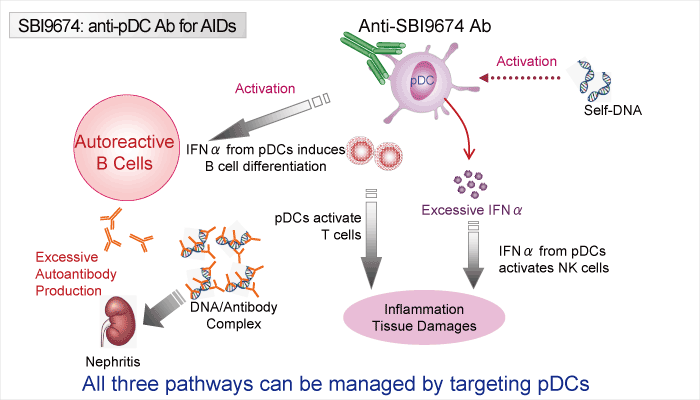 SBI-9674 are antibody drug candidates for autoimmune diseases, especially aiming for the treatment such as SLE (Systemic Lupus Erythematosus).
